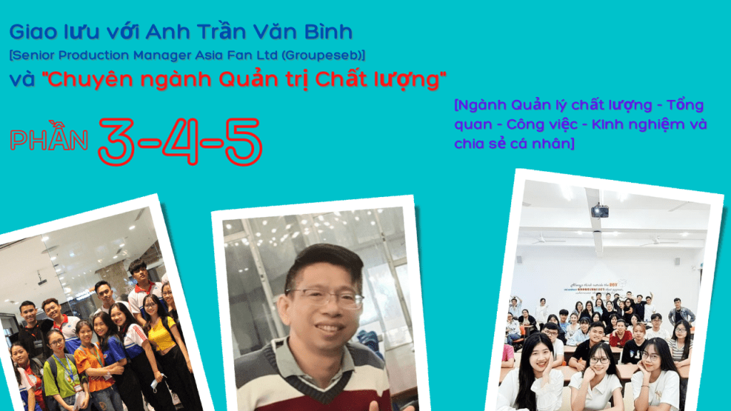 Buổi giao lưu được tổ chức giữa Anh Trần Văn Bình – Senior Production Manager của Asia Fan Ltd (Groupeseb) và các bạn sinh viên Chuyên ngành Quản trị chất lượng thuộc Khoa Quản trị – Trường Kinh doanh UEH – Đại học UEH (Khoa Quản trị – Đại học Kinh tế Tp.HCM).